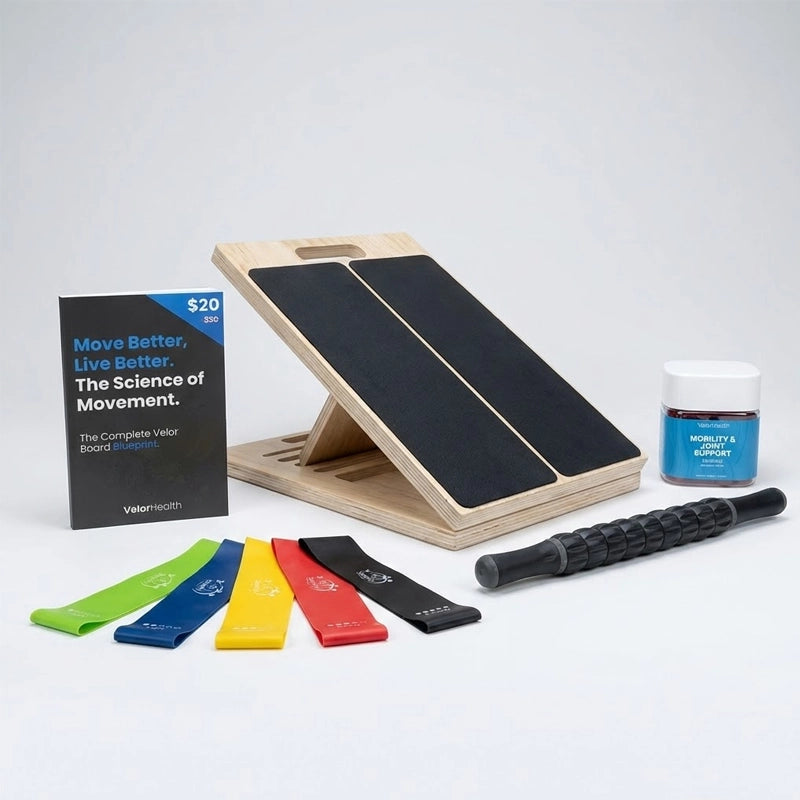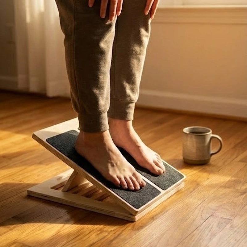 The Velor Board doesn’t load the knee joint the same way deep squats do. The incline helps loosen tight calves, hamstrings, and Achilles tendons, which can relieve tension on the knee and improve overall lower-body mobility. Strengthening and stretching the muscles that support the knee can make walking, stairs, and daily movement feel smoother.